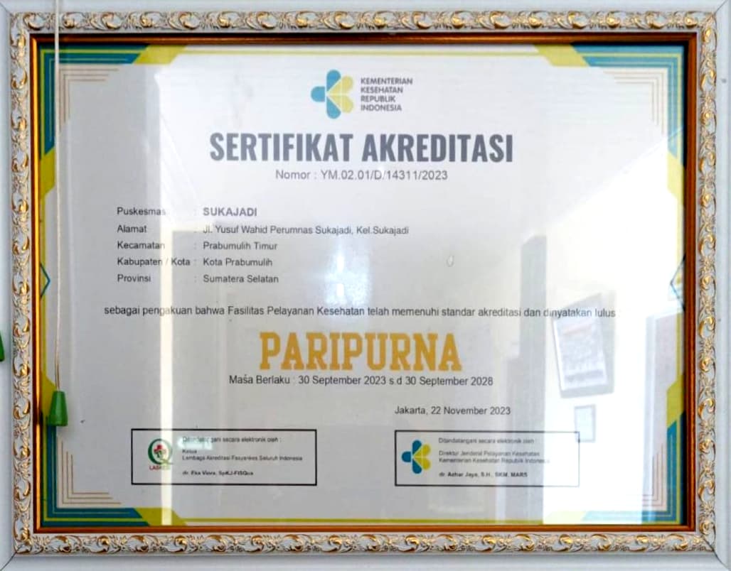 Sertifikat Akreditasi Puskesmas Sukajadi