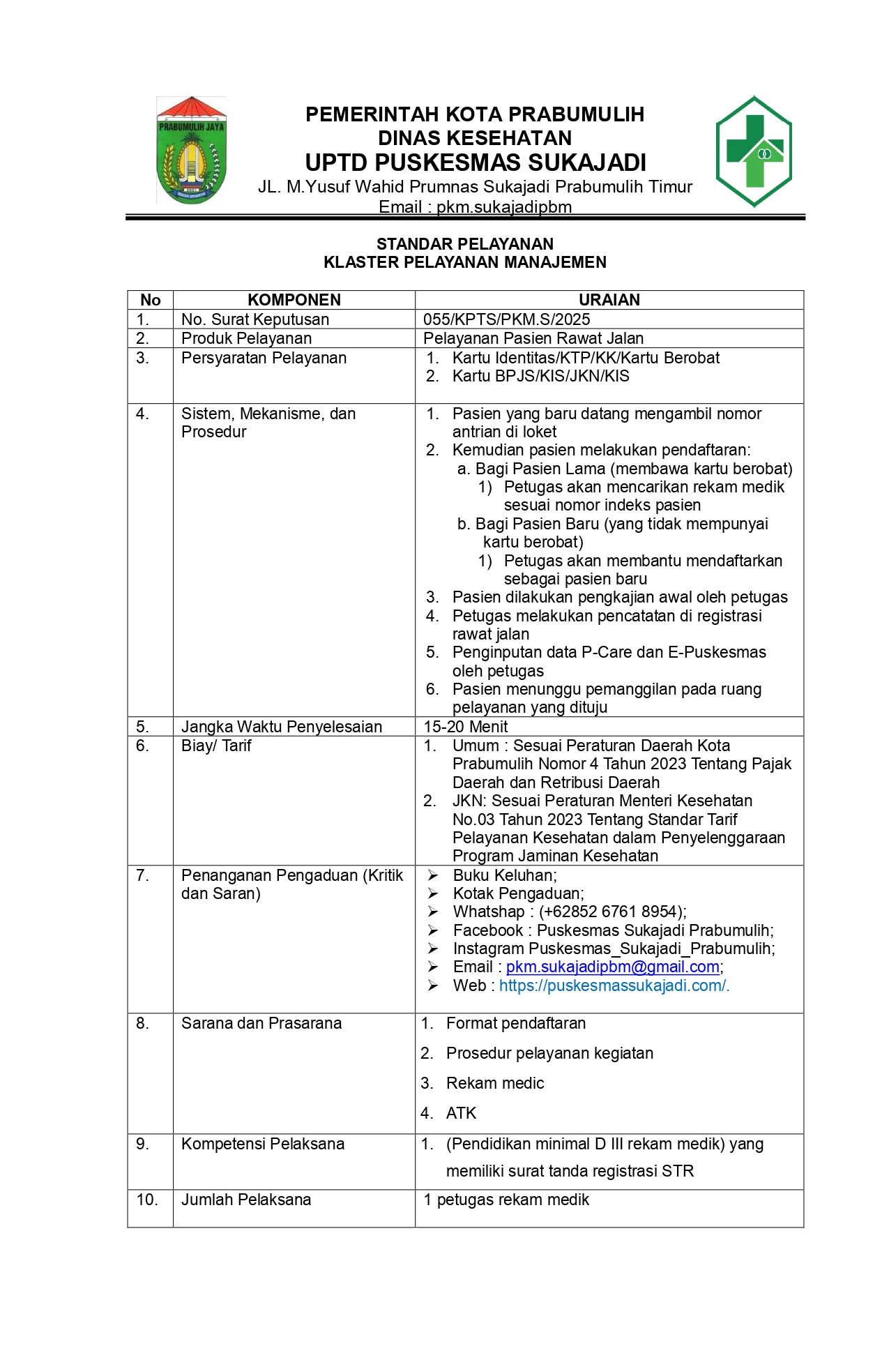 Standar Pelayanan