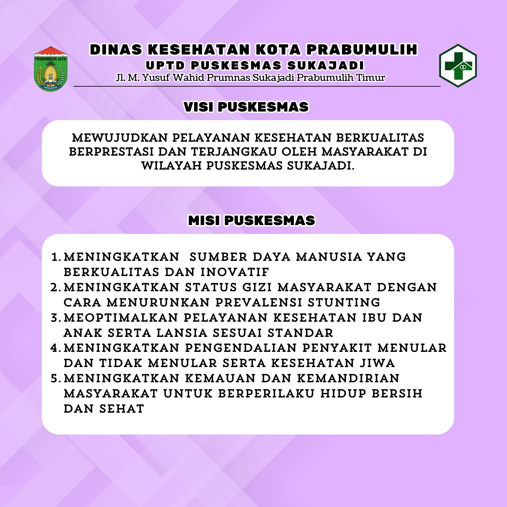 Visi dan Misi UPTD Puskesmas Sukajadi